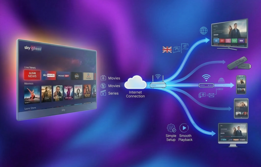 Sky Glass IPTV works smoothly on devices commonly used in UK homes