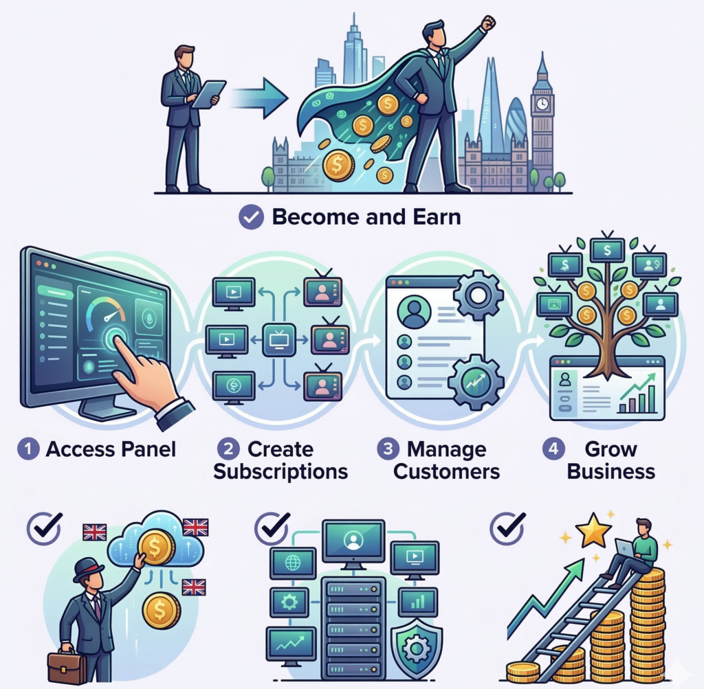 Running an IPTV reseller business in the UK follows a simple model.